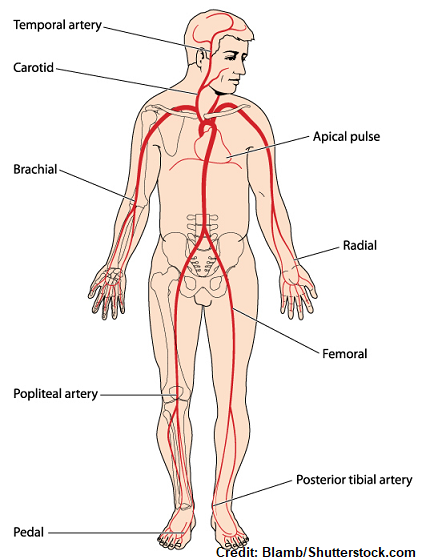 | Femoral | Along the inguinal ligament | Used in cases of cardiac arrest or shock Used to determine circulation to a leg |