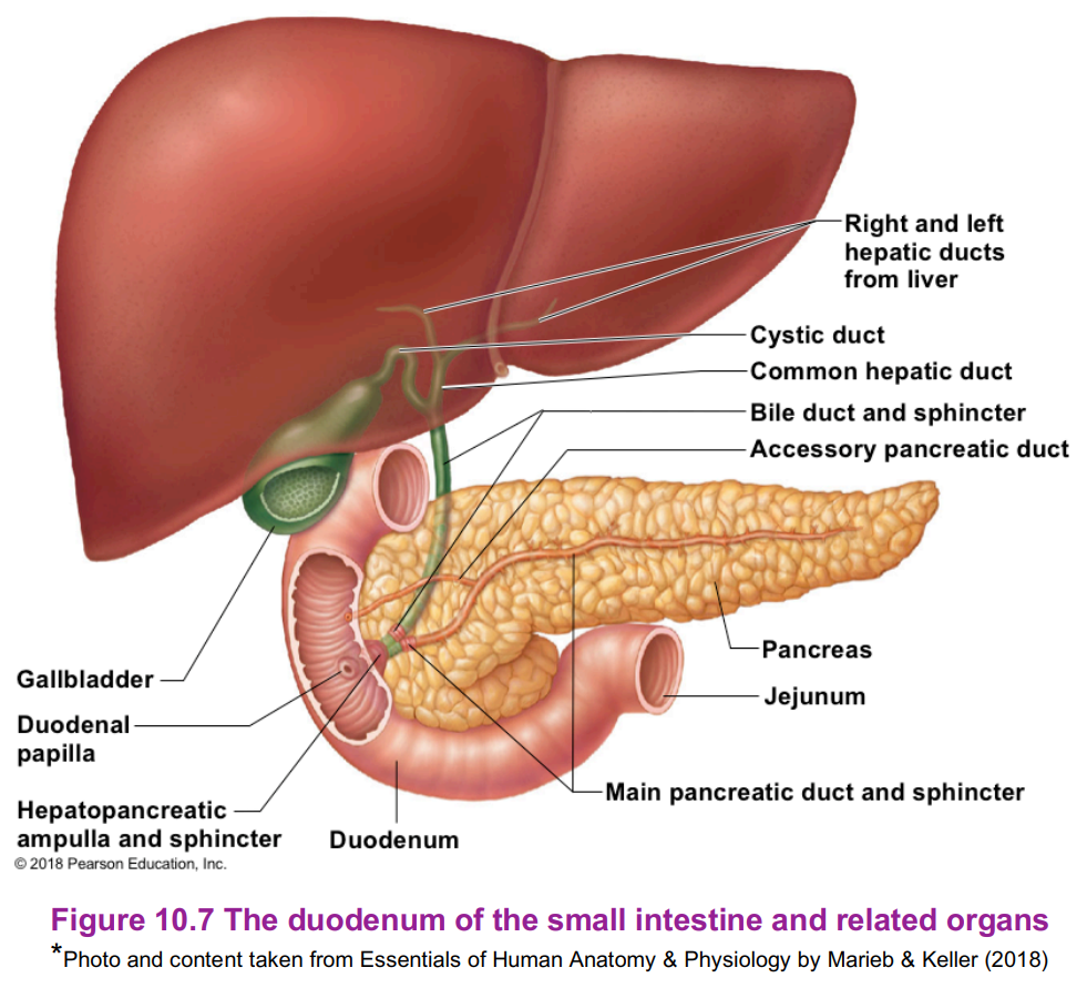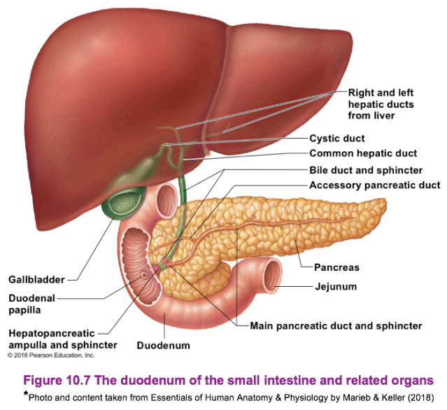 - Pancreatic Ducts: intestinal cells and pancreas enzymes are carried to the duodenum.