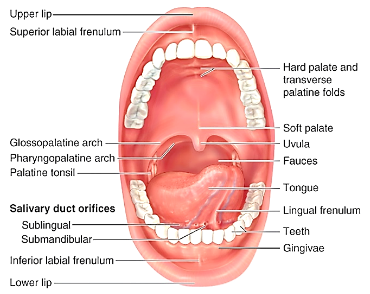 - Buccal Mucosa: the mucous membrane lining the inside of the mouth.