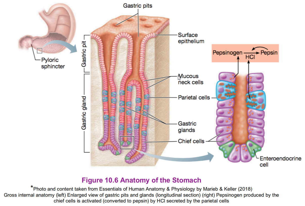 - Parietal Cells produce hydrochloric acid that activates enzymes.